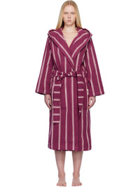 Heavyweight 385 gsm organic cotton terrycloth bathrobe. Stripes throughout. · Certified GOTS and OEKO-TEX® Standard 100 · Hood at shawl lapel · Open front · Belt loops and detachable self-tie belt · Patch pockets · Logo flag at side seam · Locker loop at inner collar Supplier color: Venice stripes 100% cotton. Made in Portugal 252482F077010