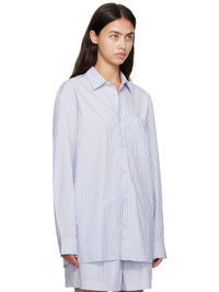 White & Blue Poplin Long-Sleeved Pyjama Shirt