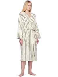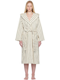 Heavyweight 385 gsm organic cotton terrycloth bathrobe. Stripes throughout. · Certified GOTS and OEKO-TEX® Standard 100 · Hood at shawl lapel · Open front · Belt loops and detachable self-tie belt · Patch pockets · Logo flag at side seam · Locker loop at inner collar Supplier color: Racing green stripes 100% cotton. Made in Portugal 252482F077013