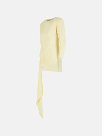 Manufacture code: T190111A TNP263 MILK Retail code: T190111A TNP263 MILK Asymmetrical crepe curled mini dress with exaggerated shoulders, wraps around the bust, long panel that goes down to the ankles, invisible side zip, back zip closure Main: 100% polyester Made in Italy