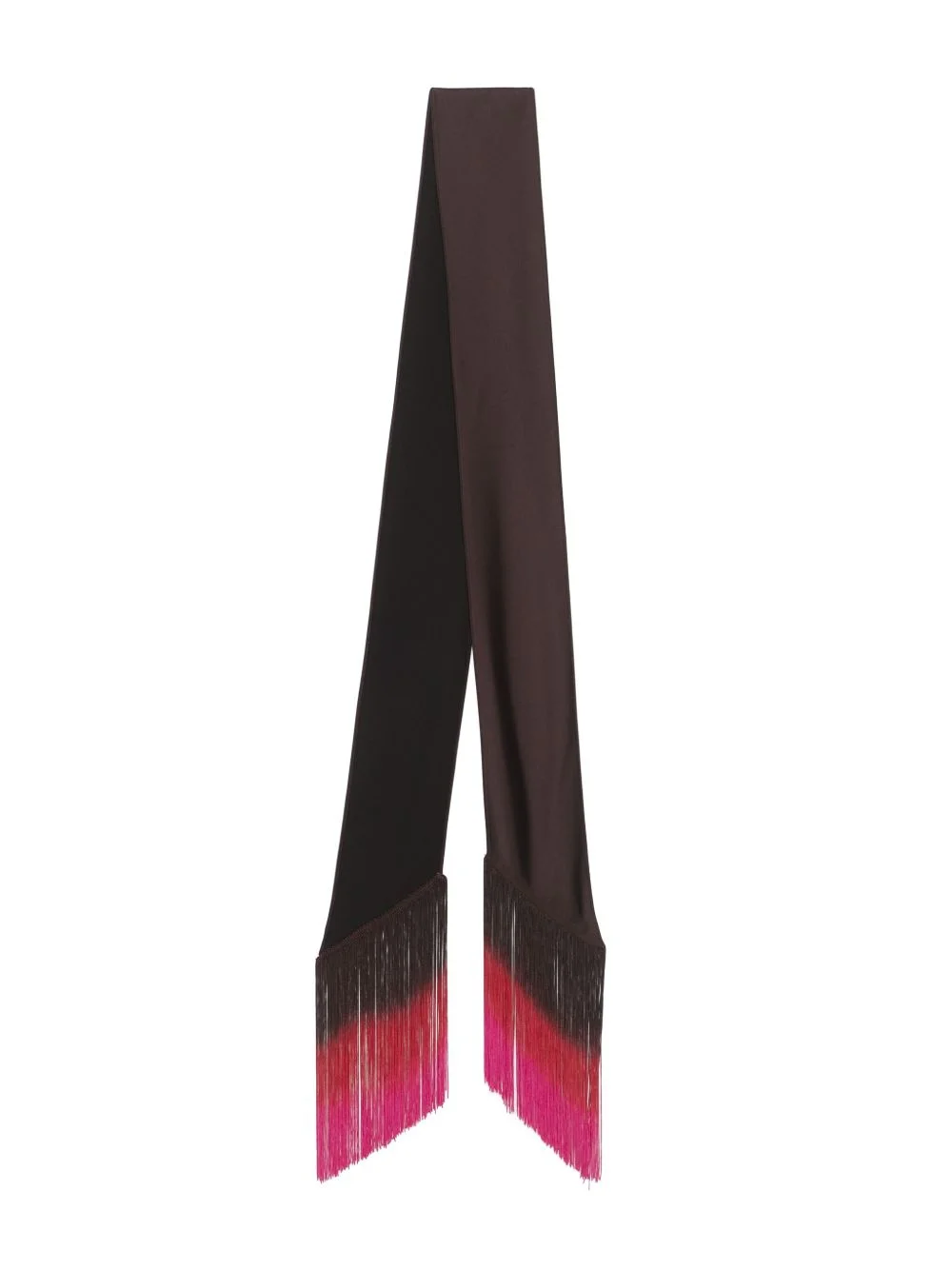 fringed scarf Highlights - Black - Rectangle shape - Wraparound style Made in Italy Composition Polyester 100% SIZE & FIT Measurement LENGTH 96.45 in(245 cm) WIDTH 4.72 in(12 cm) Washing instructions Hand Wash
