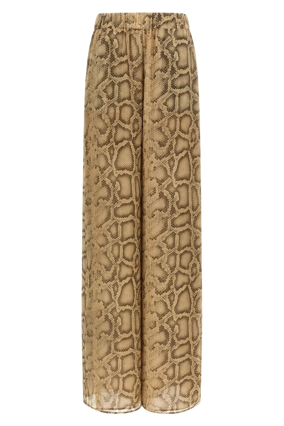 cod. T190425BTNP264NATURALPYTHON 'Lena' pants in natural python print georgette, medium elastic waistband, wide and straight leg, pockets, lining. Color: Beige Size & Fit: true to size fit Composition: 100% polyester Made in: Italy