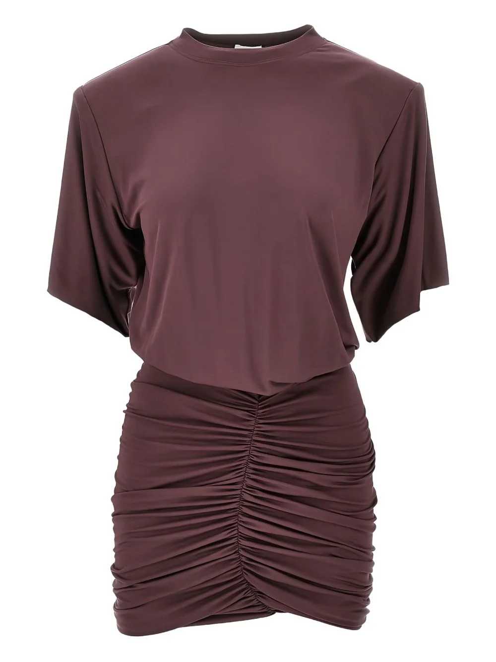 Lennox ruched mini dress Highlights - Purple - Ruched detailing - Short sleeves - Round neck Made in Italy Composition Viscose 95%, Silk 5% Washing instructions Read Manufacturer Guidelines