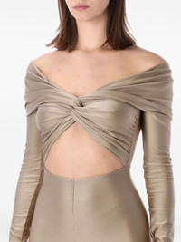 off-shoulder cut-out jumpsuit Highlights - Gold-tone - Off-shoulder style - Long-sleeves - Cut-out - Fitted - Full length Imported Composition Polyamide 80%, Elastane 20% Washing instructions Read Manufacturer Guidelines