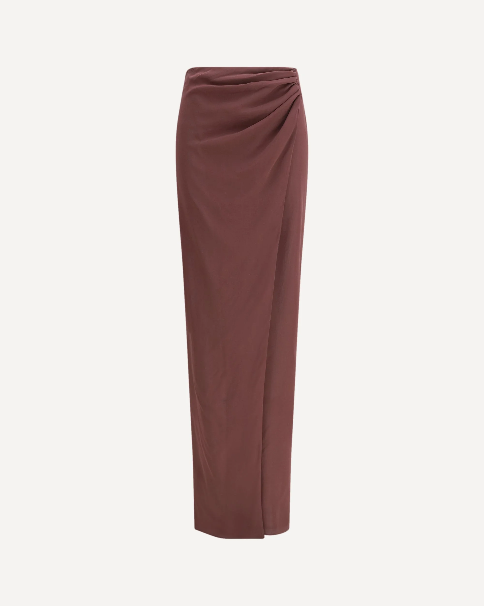 The Phoebe midi Skirt by The Andamane combines elegance and femininity in a sophisticated, contemporary design. Made from silk with a draped waist, it features an elasticated fit that guarantees comfort and wearability. The high waist and straight hem, complemented by a front slit, add movement and refinement to the garment. The rear zip closure ensures practicality and clean lines, making this skirt ideal for elegant and versatile looks. DETAILS - Sku: T190341ATNS038_375 - Season: SS26 - Fit: Regular - Composition: GENERAL 94% Silk 6% Elastane - MADE IN ITALY