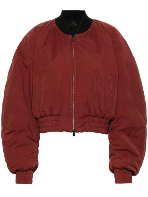 Sierra bomber jacket Highlights - Blood red - Crinkled-effect finish - Padded design - Ribbed band collar - Front two-way zip fastening - Long raglan sleeves with elasticated cuffs - Front stud-fastening pockets - Full lining - Elasticated hem Made in Italy Composition Outer: Cotton 45%, Polyester 39%, Polyamide 16% Lining: Polyester 100% SIZE & FIT Model measurements Height 5 ft 9 in(1.76 m) Bust/Chest 31.88 in(81 cm) Hips 35.43 in(90 cm) Waist 24.8 in(63 cm) FittingInformation Designed to be unstructured, offering a loose fit throughout The elasticated waist allows for a comfortable fit Made from a padded non-stretch fabric, giving it no natural elasticity Washing instructions Hand Wash