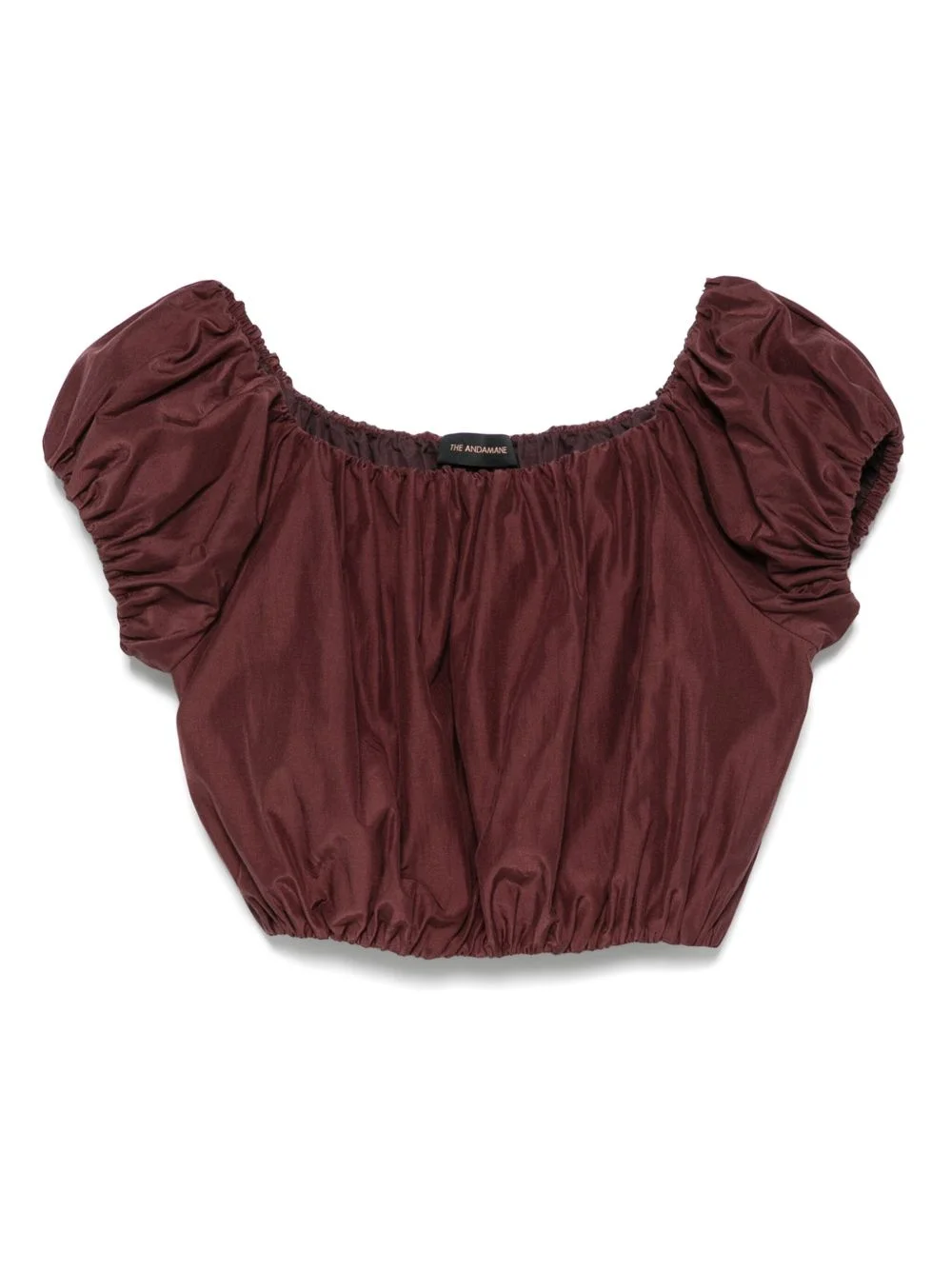 Whitely top Highlights - Auburn brown - Short sleeves - Elasticated trim Made in Italy Composition Outer: Polyester 52%, Cotton 48% Lining: Cotton 100% SIZE & FIT Model measurements Height 5 ft 10 in(1.78 m) Bust/Chest 33.46 in(85 cm) Hips 36.22 in(92 cm) Waist 23.22 in(59 cm) FittingInformation Designed for a relaxed fit, this piece allows for comfort and movement when worn The elasticated shoulders offer movement and a comfortable fit Made from a midweight non-stretch fabric Washing instructions Machine Wash