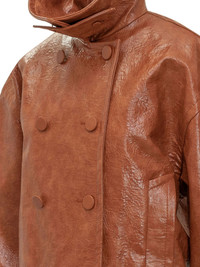 balloon-sleeve double-breasted jacket Highlights - Brown - Balloon sleeves - Double-breasted fastening - Self-tie belt Made in Italy Composition Polyurethane 40%, Viscose 40%, Polyester 7%, Fabric 5%, Cotton 5%, Metal 3% Washing instructions Read Manufacturer Guidelines