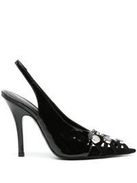 110mm Fiona pumps Highlights - Black - Calf leather - Patent finish - 110mm high stiletto heel - Elasticated slingback strap - Suede panelling - Stud detailing - Cut-out detailing - Pointed toe - Branded leather insole - Leather outsole Made In Italy Composition Outer: Patent Leather 100%, Calf Suede 100%, Metal 100% Lining: Calf Leather 100% Sole: Calf Leather 100%, Rubber 100% SIZE & FIT Measurement HEEL 4.33 in(11 cm)