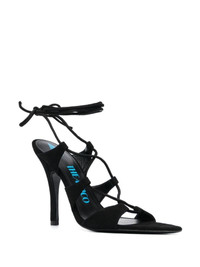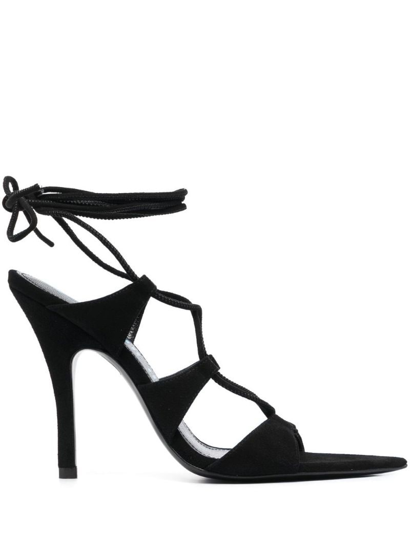 110mm lace-up sandals The Attico's sandals are updated with a black calf-leather upper. Set on a high stiletto heel, it has a lace-up design and pointed toe for a contemporary finish. Made In Italy Composition Outer: Goat Skin 100% Sole: Calf Leather 100% Lining: Calf Leather 100% SIZE & FIT Measurement HEEL 4.3 in(11 cm)