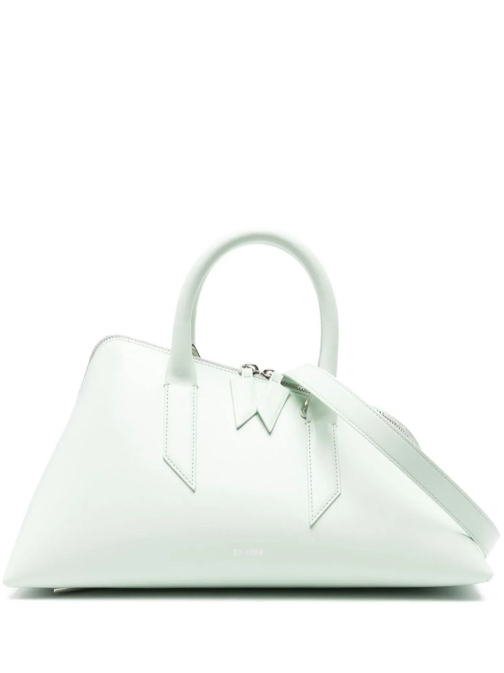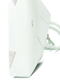 24H leather tote bag Showcasing The Attico's architectural aesthetic, the 24H tote bag is defined by its asymmetric silhouette. It's crafted in Italy from pastel-green leather and features an all-around zip that mirrors the avant-garde structure. Highlights - Pastel green - Calf leather - Logo stamp to the front - All-around zip fastening - Two rolled top handles - Adjustable detachable shoulder strap - Triangle-shaped metal feet - Leather lining - Debossed internal logo - Internal card slot - Main compartment - Silver-tone hardware - This piece comes complete with a protective dust bag. Made in Italy Composition Outer: Calf Leather 100% Lining: Polyurethane 51%, Polyester 49% SIZE & FIT Model measurements Height 5 ft 11 in(1.8 m) Bust/Chest 33.07 in(84 cm) Hips 37 in(94 cm) Waist 25.59 in(65 cm) Measurement DEPTH 5.9 in(15 cm) HANDLE 4.72 in(12 cm) HEIGHT 7.87 in(20 cm) STRAP 25.59 in(65 cm) WIDTH 13.77 in(35 cm)