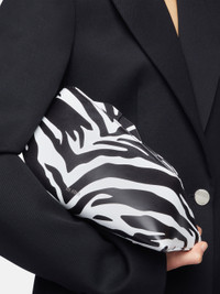 ''8.30PM'' oversized clutch in black and white zebra printed leather with magnetic closure. Style 231WAH01EL020020 SIZE & FIT Height 6,7 inch, width 12,6 inch, depth 5,9 inch DETAILS Main Leather: 100% calf bos taurus farm raised coo: Kenya/South Africa, Lining: 51% polyurethane, 49%(70% cotton 30% polyester), Inside pocket: 100% calf bos taurus farm raised coo: Kenya/South Africa.