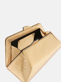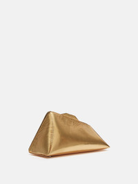 ''8.30PM'' oversized clutch in gold craquelè laminated leather with magnetic closure. Style 236WAH01L070545 SIZE & FIT Height 6,7 inch, width 12,6 inch, depth 5,9 inch DETAILS Main leather: 100% goat capra hircus farm raised coo: Mongolia, lining: 51% polyurethane, 49% (70% cotton 30% polyester), Inside pocket: 100% goat capra hircus farm raised coo: Mongolia.