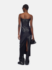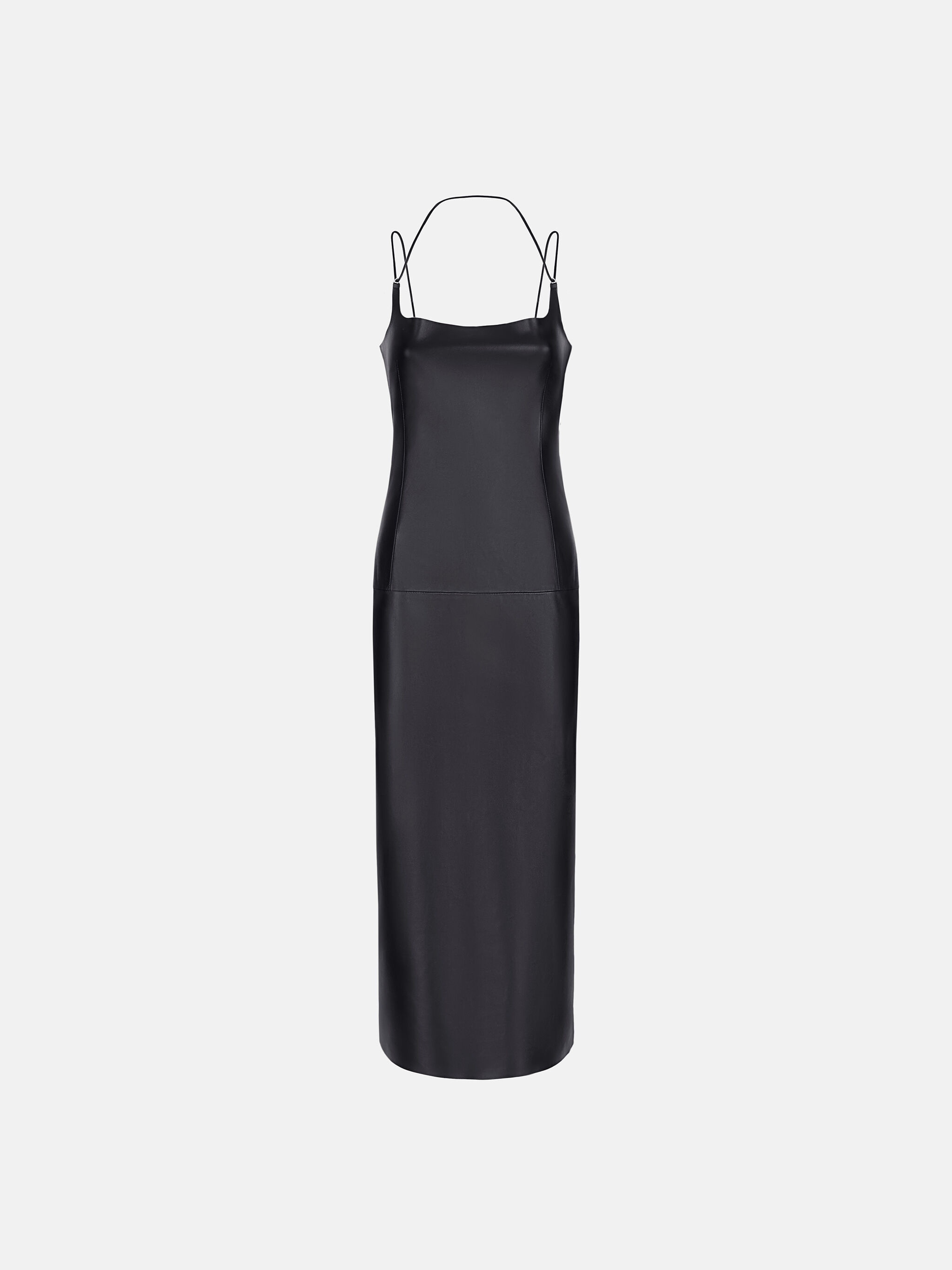 Midi dress in black leather with double strap and logo metal adjusters. Made in Romania. Style 241WCM94L054100 SIZE & FIT The model is wearing a size 40 and her height is 69,6 in, bust 31,4 in, waist 23,6 cm, hips 34,6 in - height 177 cm, bust 80 cm, waist 60 cm, hips 88 cm. Regular fit. We recommend taking your true size. DETAILS Main fabric: 100% lamb leather (Ovis Aries Aries) dyed, farm raised, coo: Algeria