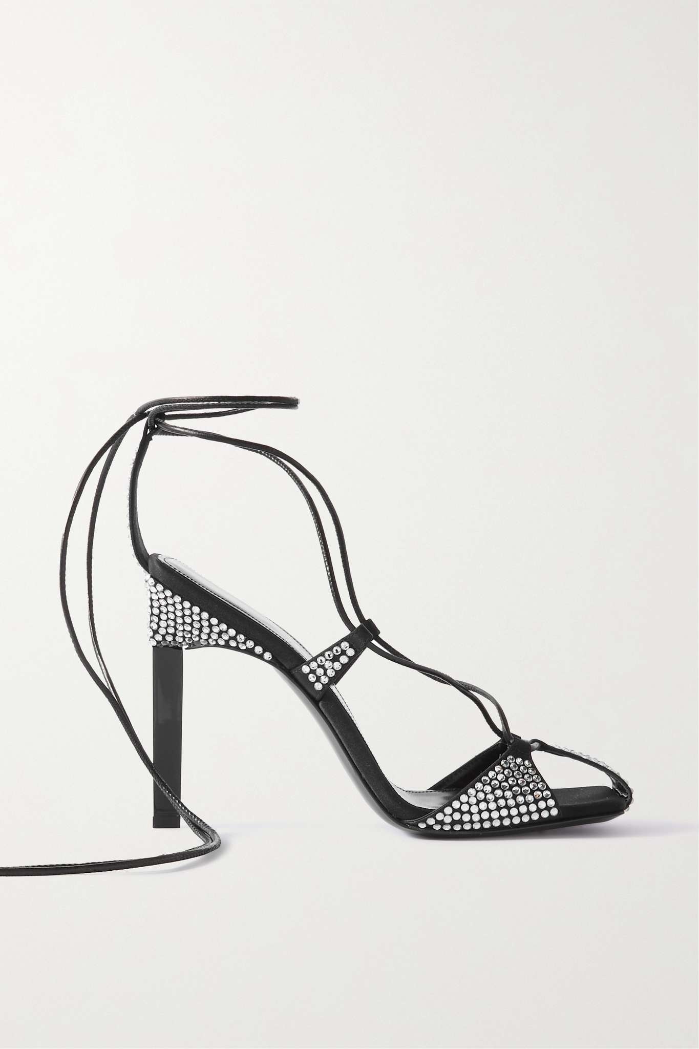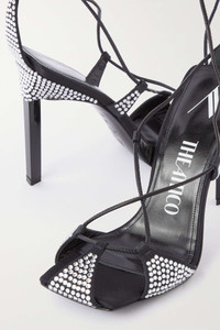 EDITORS'NOTES The Attico's 'Adele' sandals will be a sartorial talking point. Made from soft leather and satin, they're embellished with glistening crystals. Style them with your favorite dresses, adding a dazzling micro clutch for a touch of coordination. SIZE & FIT - Fits true to size, take your normal size - Italian sizing DETAILS & CARE - Heel measures approximately 105mm/ 4 inches - Black satin and leather (Goat and Calf) - Ties at ankle Large to size. See Size & Fit notes.