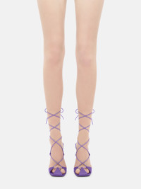 ''Adele'' lace-up sandal in violet satin with matching lacquered heel height 105mm. Style 232WS411V015012 SIZE & FIT The model is wearing a size 39. DETAILS Main fabric 90%: 100% polyester dyed, second leather 10%: 100% lamb leather dyed, ovis aries aries farm raised coo: South Africa, insole and lining: 100% goat leather dyed, capra hircus farm raised coo: India, sole: 100% bovine leather dyed, bos taurus farm raised coo: Germany, heel 105mm - Style WS411V015469