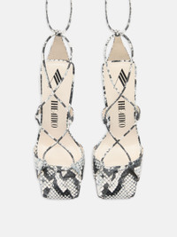 White python printed leather ''Adele'' lace-up sandal, red lacquered heel height 105mm. Style 231WS411EL003059 SIZE & FIT The model is wearing a size 39. DETAILS Main leather: 100% goat leather dyed, capra hircus farm raised coo: Syria - insole and lining: 100% goat leather dyed, capra hircus farm raised coo: India - sole: 100% bovine leather dyed, bos taurus farm raised coo: Germany - Heel 105mm