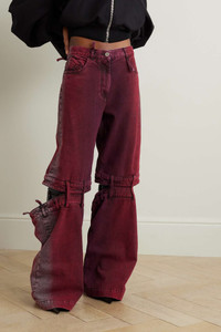 EDITORS'NOTES The Attico goes bold with these 'Ashton' jeans, and yet they still feel effortless. They're constructed from denim with wide legs, have cutouts at the knees and exaggerated belt loops. Stay classic up top with a plain white tee or tank. SIZE & FIT - Fits true to size, take your normal size - Designed to be worn loose and low on the hips - Size 26 jeans have an inside leg of 33.9"/ 86cm - Mid-weight, non-stretchy fabric - Model is 180cm/ 5'11" and is wearing a size 26 DETAILS & CARE - Tonal-red denim - Button and concealed zip fastening at front - 100% cotton - Dry clean