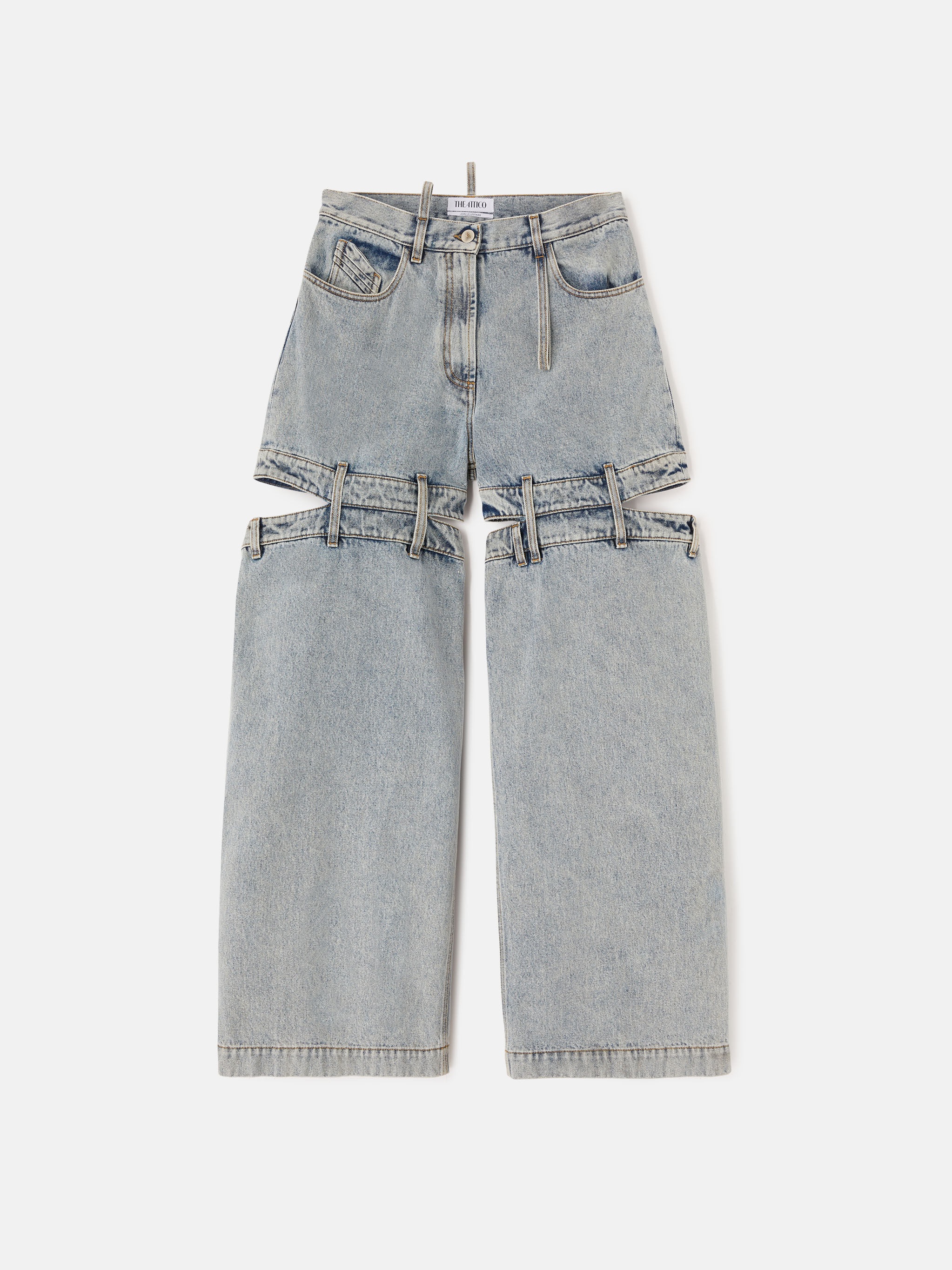 'Ashton'' long pants in vintage blue denim with cut-out on the back and folded fifth pocket. Made in Italy. Style 236WCP126D058518 SIZE & FIT The model is wearing a size 40 and her height is 70,4 in, bust 30,7 in, waist 21,6 in, hips 34,6 in - height 179 cm, bust 80 cm, waist 60 cm, hips 90 cm. Relaxed, oversized fit. We recommend taking one size smaller. DETAILS Main fabric: 100% cotton , lining: 65% polyamide 35% cotton, embroidery: 100% polyester