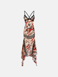 Midi dress in beige, black, red and nude camouflage printed georgette with lace insert. Made in Italy. Style 247WCM119V085P746 SIZE & FIT The model is wearing a size 40 and her height is 69,6 in, bust 30,7 in, waist 23,2 in, hips 34,6 in - height 177 cm, bust 78 cm, waist 59 cm, hips 88 cm. Regular fit. We recommend taking your true size. DETAILS Main material: 100% silk, second material: 15% polyester 60% viscose 25% polyamide, others: 75% polyamide 25% viscose