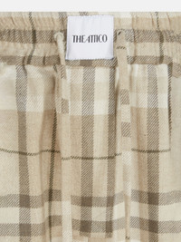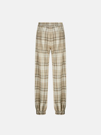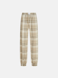 Long pants in beige cotton check with wide leg and elastic at the bottom. Made in Italy. Style 250WCP00257CCC050AA198 SIZE & FIT The model is wearing a size 40 and her height is 69,6 in, bust 30,7 in, waist 23,2 in, hips 34,6 in - height 177 cm, bust 78 cm, waist 59 cm, hips 88 cm. Regular fit. We recommend taking your true size. DETAILS Main Material: 80% cotton 20% polyester, lining: 100% cotton