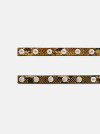 Belt in python printed leather black and sahara with snaps. Made in Italy. Style 251WKE00027LBT003PR202 DETAILS Main leather: 100% calf leather, bos taurus taurus coo: Uganda, lining: 100% calf bos taurus farm raised coo: USA, snaps: 100% Brass.