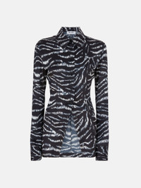 Fitted shirt in black and white zebra print satin. Made in Italy. Style 250WCH00042VSE001PR414 SIZE & FIT The model is wearing a size 40 and her height is 69,6 in, bust 30,7 in, waist 23,2 in, hips 34,6 in - height 177 cm, bust 78 cm, waist 59 cm, hips 88 cm. Regular fit. We recommend taking your true size. DETAILS Main Material: 52% viscose 38% silk 10% elastane