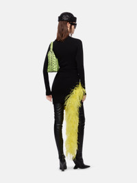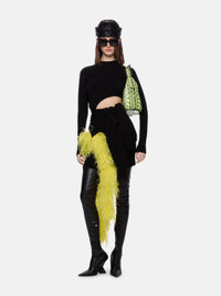 Mini skirt in black and yellow cotton bouclè with asymmetrical handkerchief shape and logo metal ends. Style 231WCS133KV001F166 SIZE & FIT The model is wearing a size 40 and her height is 179 cm, bust 80 cm, waist 60 cm, hips 90 cm. Regular fit. We recommend taking your true size. DETAILS Main fabric: 70% viscose 30% polyester, embroidery: 100% ostrich feathers