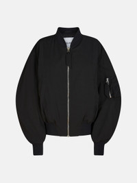 "Anja'' bomber in black nylon with jacquard logo lining. Made in Italy. Style 250WCB00070PLL001AA100 SIZE & FIT The model is wearing a size 40 and her height is 69,6 in, bust 30,7 in, waist 23,2 in, hips 34,6 in - height 177 cm, bust 78 cm, waist 59 cm, hips 88 cm. Regular fit. We recommend taking your true size. DETAILS Main Material: 100% polyester, lining: 100% polyester, wadding: 100% polyester, rib: 100% polyamide