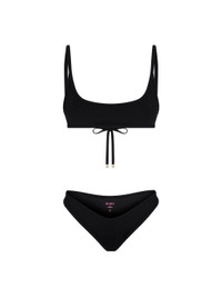 Bikini in black lycra rib with bandeau top and metallic logo ends. Style 233WBB06PA16100 SIZE & FIT The model is wearing a size S and her height is 181 cm, bust 83 cm, waist 62 cm, hips 89 cm. Regular fit. We recommend taking your true size. DETAILS Main fabric: 88% polyamid 12% elastane, lining: 84% polyamid 16% elastane