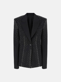 Blazer in black thermostrass degrade gabardine with wide sleeve, jacquard logo lining and logo button. Made in Italy. Style 250WCG00061WWW046TS100 SIZE & FIT The model is wearing a size 40 and her height is 69,6 in, bust 30,7 in, waist 23,2 in, hips 34,6 in - height 177 cm, bust 78 cm, waist 59 cm, hips 88 cm. Regular fit. We recommend taking your true size. DETAILS Main Material: 100% virgin wool, lining: 100% viscose