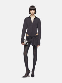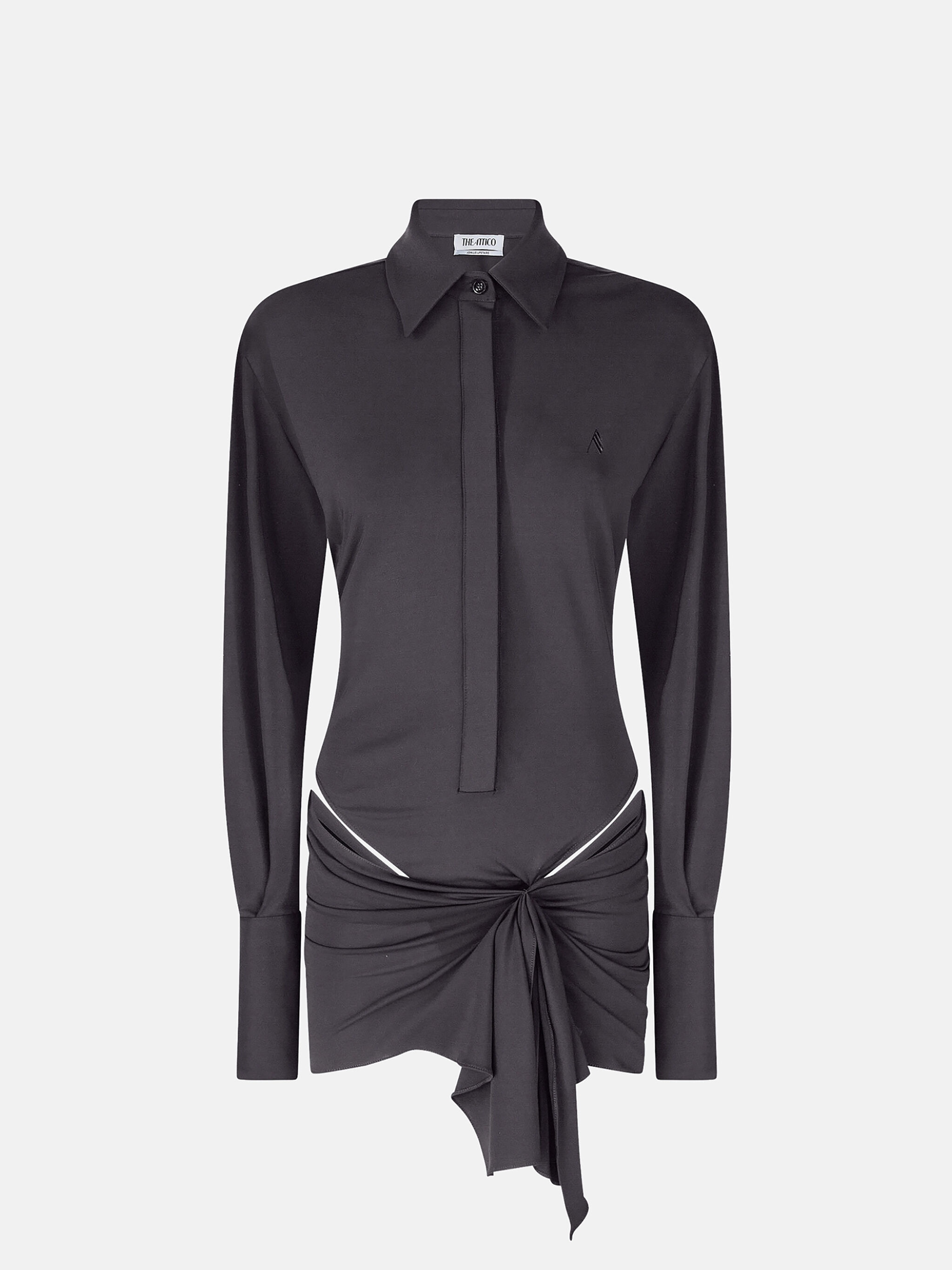 Mini shirt dress in black jersey stretch, with draped skirt, body and embroidered logo. Made in Italy. Style 248WCA306A014100 SIZE & FIT The model is wearing a size 40 and her height is 69,6 in, bust 30,7 in, waist 23,2 in, hips 34,6 in - height 177 cm, bust 78 cm, waist 59 cm, hips 88 cm. Regular fit. We recommend taking your true size. DETAILS Main fabric: 75% acetate 20% polyamide 5% elastane