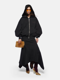 Midi skirt in black fade and brown double american fleece with lace insert. Made in Italy. Style 250WCS00143JJF007AA877 SIZE & FIT The model is wearing a size 40 and her height is 69,6 in, bust 30,7 in, waist 23,2 in, hips 34,6 in - height 177 cm, bust 78 cm, waist 59 cm, hips 88 cm. Regular fit. We recommend taking your true size. DETAILS Main Material: 100% cotton, second material: 95% cotton 5% elastane