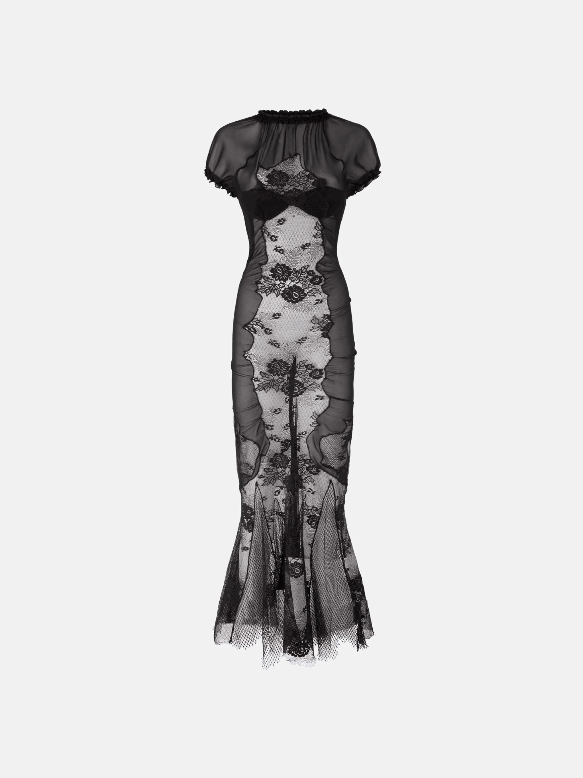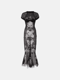 Midi dress in mix of material mesh and flowers and geometric lace black. Short sleeves. Made in Italy. Style 260WCW00286MIX088AA100 SIZE & FIT The model is wearing a size 40 and her height is 179 cm, bust 80 cm, waist 60 cm, hips 88 cm - Height 5,10 in, bust 31,4 in, waist 23 in, hips 35 in. Regular fit. We recommend taking your true size. DETAILS Main material: 52% cotton 48% polyamide, second material: 100% polyester , third material: 92% polyamide 8% elastane, fourth material: 100% polyamide