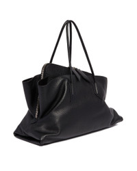 The Attico Black Large La Passeggiata Bag in Grained Leather. Black grained leather, tubular tone-on-tone handles, zipper closure. Suede leather lining, open internal pocket, tone-on-tone stitching, iconic triangular feet, silver-tone hardware. Asymmetric trapezoid silhouette. Size (cm): 57X59X24 DETAILS Model: 250WAH00057LBT117AA100 Composition: 100% Leather; Details: 100% Brass Made in: ITALY Season: FW25-26