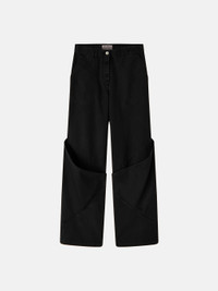 Long pants in black denim with pockets on the back and on the knee and embroidered logo. Made in Italy. Style 248WCP198D075100 SIZE & FIT The model is wearing a size 26 and her height is 69,6 in, bust 30,7 in, waist 23,2 in, hips 34,6 in - height 177 cm, bust 78 cm, waist 59 cm, hips 88 cm. Regular fit. We recommend taking your true size. DETAILS Main fabric: 68% rayon 27% polyamide 5% elastane