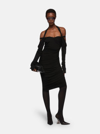 Midi dress in black crepe viscose. Made in Italy. Style 251WCW00248VVV105AA100 SIZE & FIT The model is wearing a size 40 and her height is 70 in, bust 31,1 in, waist 24 in, hips 34,6 in - height 178 cm, bust 79 cm, waist 61 cm, hips 88 cm. Regular fit. We recommend taking your true size. DETAILS Main material: 100% viscose, second material: 69% polyamide 31% elastane