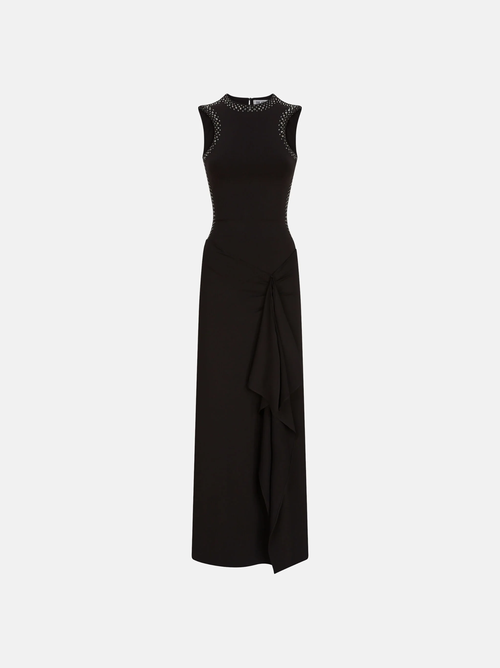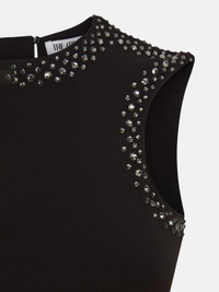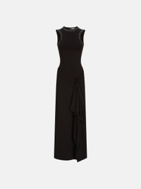 Midi dress in black opaque jersey degrade thermostrass with halter neckline body and handkerchief skirt. Made in Italy. Style 250WCW00207AAA014TS100 SIZE & FIT The model is wearing a size 40 and her height is 69,6 in, bust 30,7 in, waist 23,2 in, hips 34,6 in - height 177 cm, bust 78 cm, waist 59 cm, hips 88 cm. Regular fit. We recommend taking your true size. DETAILS Main Material: 75% acetate 20% polyamide 5% elastane, strass: 100% glass