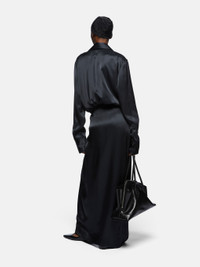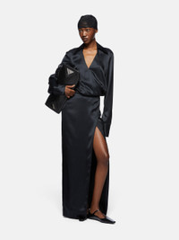 Midi shirt dress in black satin draped on the front. Made in Italy. Style 250WCW00211VVV088AA100 SIZE & FIT The model is wearing a size 40 and her height is 69,6 in, bust 30,7 in, waist 23,2 in, hips 34,6 in - height 177 cm, bust 78 cm, waist 59 cm, hips 88 cm. Regular fit. We recommend taking your true size. DETAILS Main Material: 100% viscose, lining: 100% polyester
