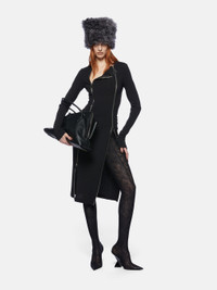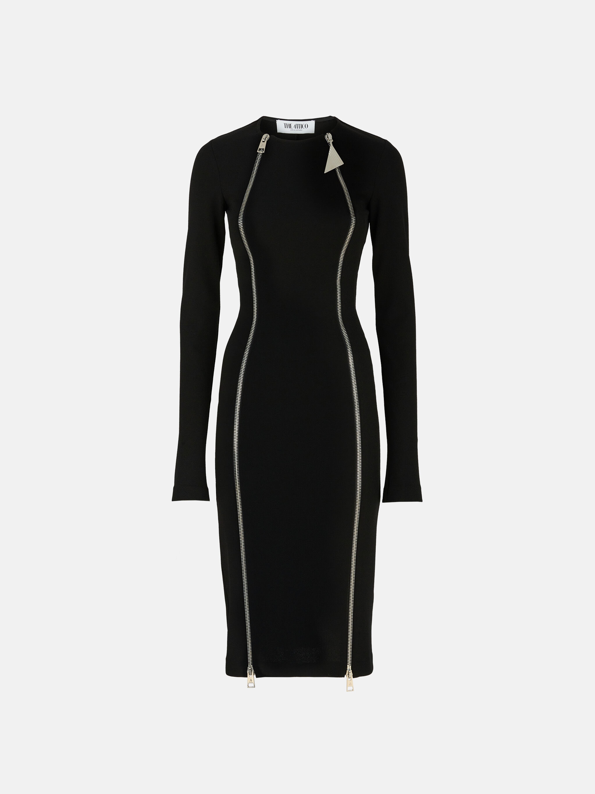 Midi dress in black sable'' with long sleeves and logo metal zip puller. Made in Italy. Style 250WCW00210PLL002AA100 SIZE & FIT The model is wearing a size 40 and her height is 69,6 in, bust 30,7 in, waist 23,2 in, hips 34,6 in - height 177 cm, bust 78 cm, waist 59 cm, hips 88 cm. Regular fit. We recommend taking your true size. DETAILS Main Material: 100% polyester