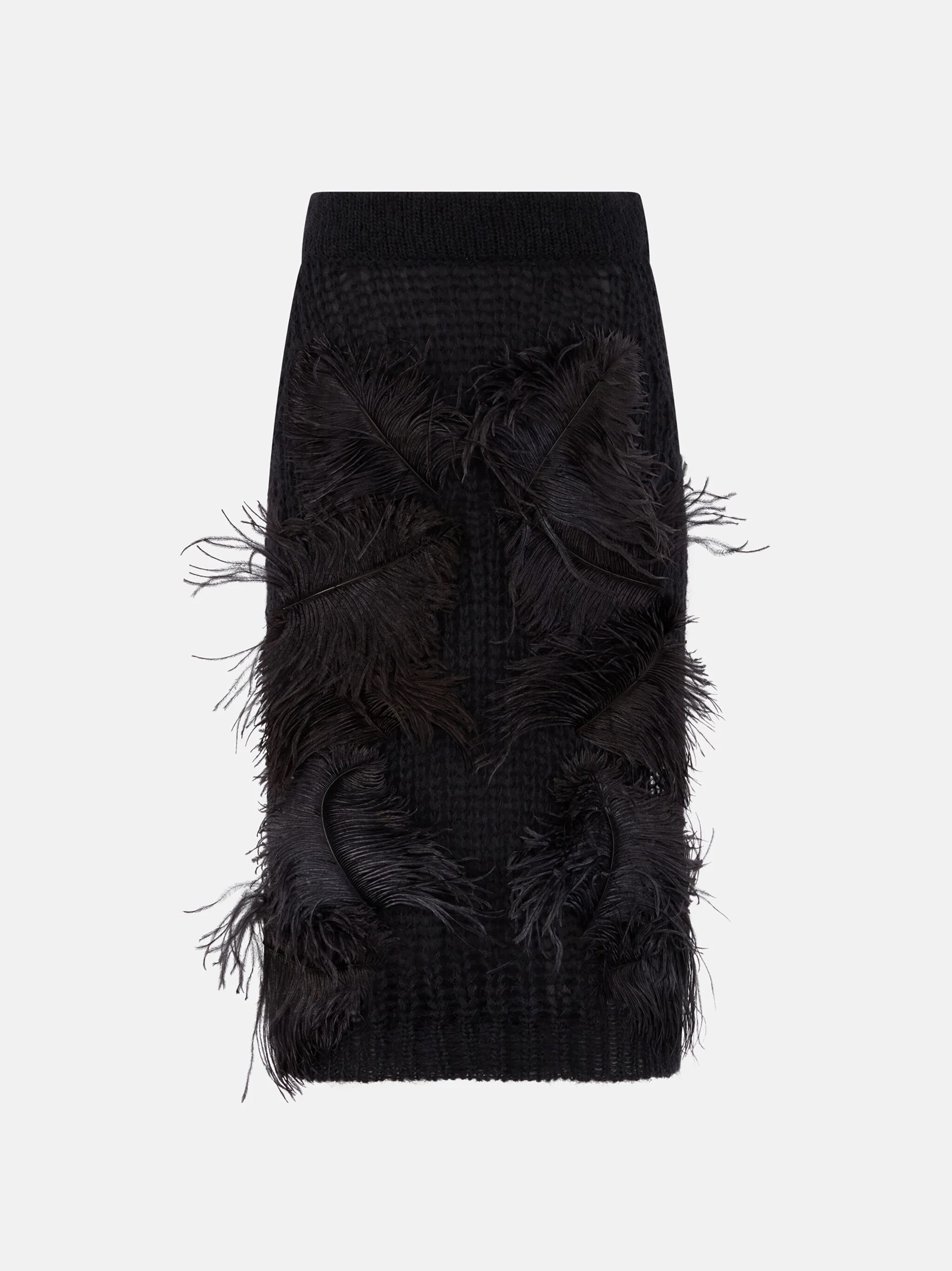 Midi skirt in black light mohair with feathers. Made in Italy. Style 260WCS00294KMX002FS100 SIZE & FIT The model is wearing a size 40 and her height is 179 cm, bust 80 cm, waist 60 cm, hips 88 cm - Height 5,10 in, bust 31,4 in, waist 23 in, hips 35 in. Regular fit. We recommend taking your true size. DETAILS Main material: 46% mohair 36% polyamide 17% wool 1% elastane, lining: 100% polyester, second material: 100% ostrich feather (struthio camelus australis), farm raised coo: South Africa, embroidery: 48% mohair 35% polyamide 17% wool