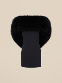 Mini dress in black crepe stretch with boa marabou on the neckline. Style 246WCA292E100F100 SIZE & FIT Regular fit. We recommend taking your true size. The model is wearing a size 40 and her height is 179 cm, bust 76 cm, waist 60 cm, hips 86 cm. DETAILS Main fabric: 90% polyester 10% elastane and marabout boa (meleagris gallopavo)