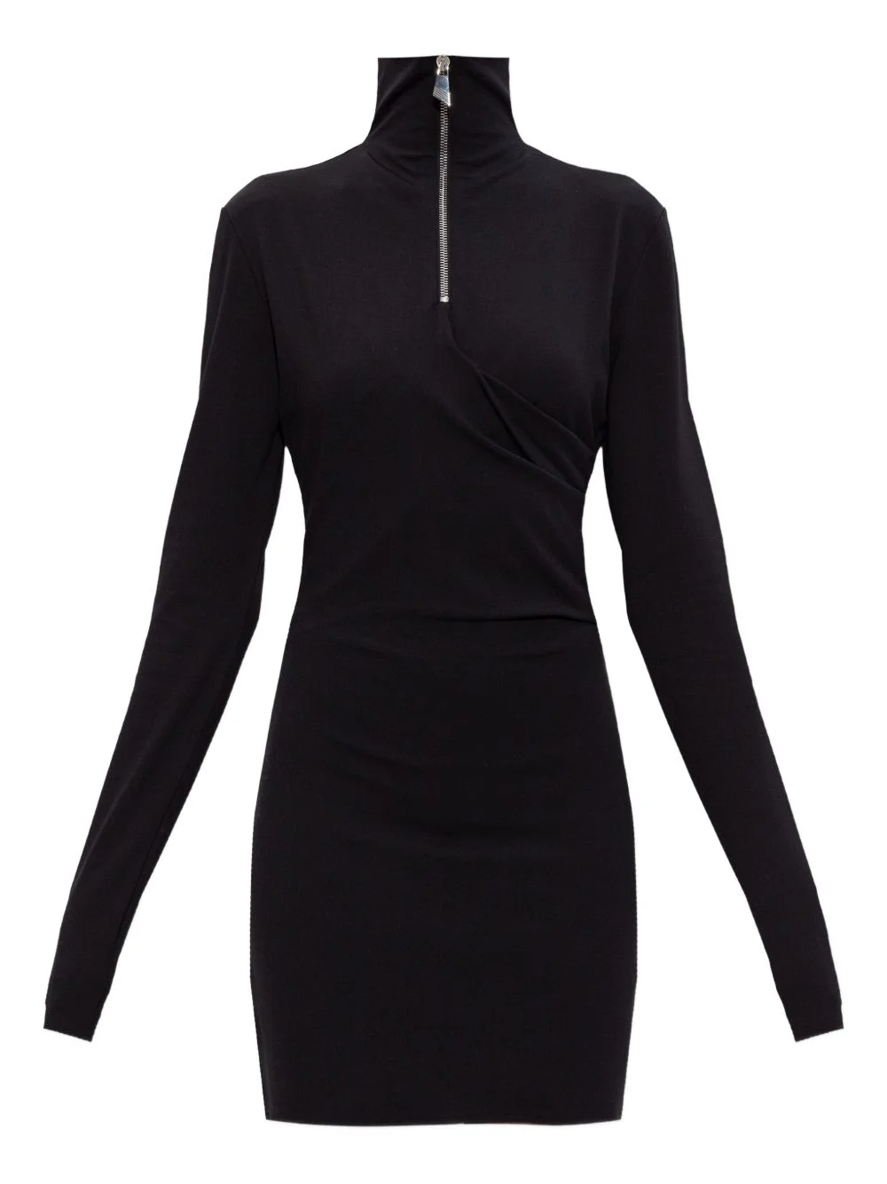 half-zip mini dress Highlights - Black - Long sleeves - Zip fastening Imported Composition Fabric 68%, Polyamide 27%, Elastane 5% Washing instructions Read Manufacturer Guidelines