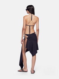 Skirt in black lycra with side laces, asymmetrical bottom and logo metal ends. Made in Italy. Style 243WCS179PA15100 SIZE & FIT The model is wearing a size 40 and her height is 5,10 in, bust 31,5 in, waist 23 in, hips 34,5 in - height is 176 cm, bust 79 cm, waist 58 cm, hips 87 cm. Regular fit. We recommend taking your true size. DETAILS Main fabric: 90% nylon 10% elastane