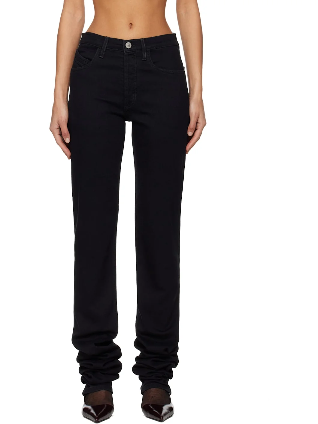 Stretch denim jeans. · Belt loops · Five-pocket styling · Zip fly · Extended legs · Logo patch at back waistband · Logo embroidered at back pocket · Logo-engraved antiqued silver-tone hardware Supplier color: Black Body: 57% cotton, 37% modal, 4% elastomultiester, 2% elastane. Pocket lining: 65% polyester, 35% cotton. Made in Italy 261528F069008