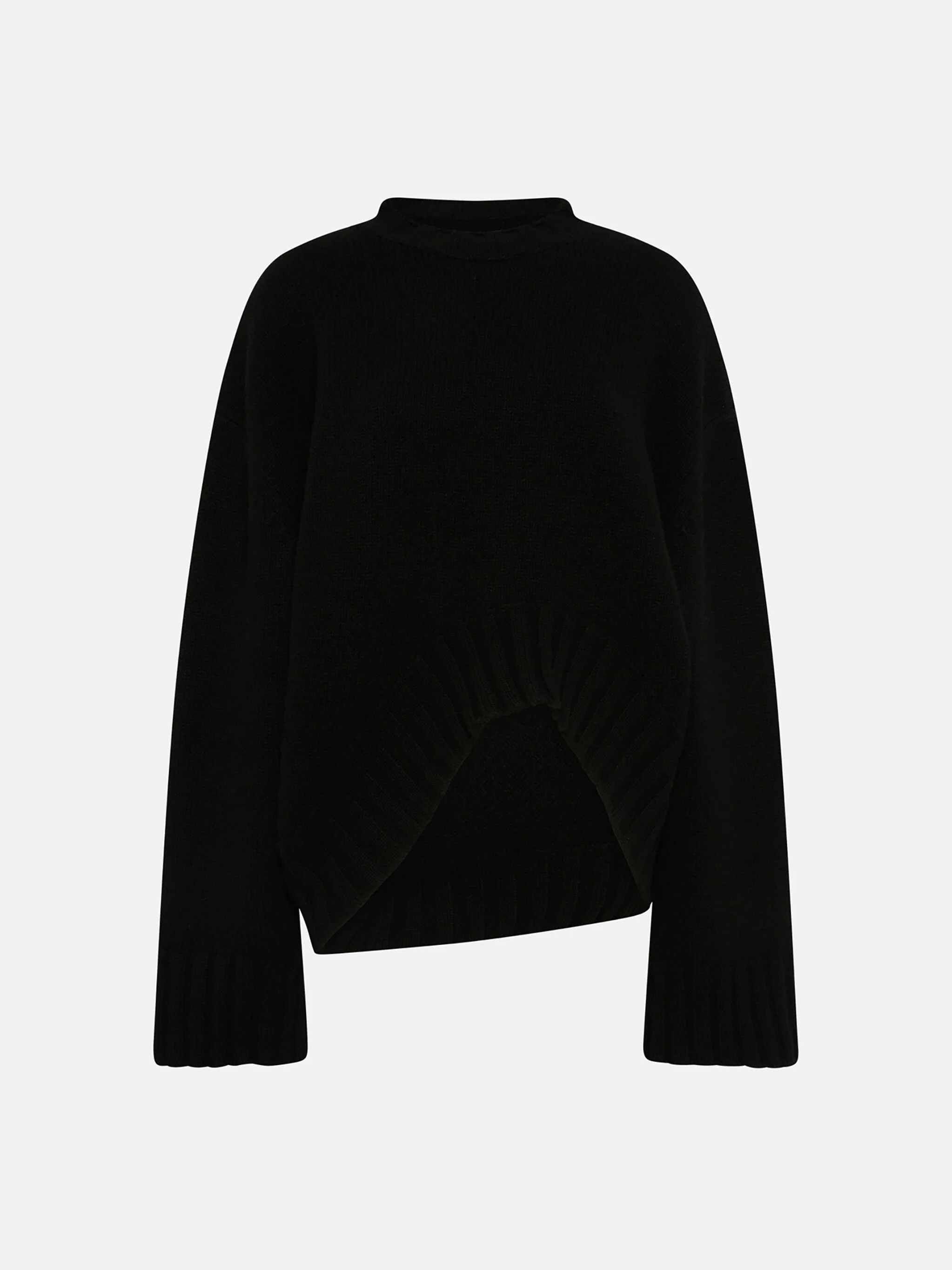 Sweater oversized in black jacquard merino wool with curved hem roundneck with ribbed cuffs, hem and collar color matching rubber label at center back. Made in Romania. Style 248WCK107KW046100 SIZE & FIT The model is wearing a size 40 and her height is 69,6 in, bust 30,7 in, waist 23,2 in, hips 34,6 in - height 177 cm, bust 78 cm, waist 59 cm, hips 88 cm. Regular fit. We recommend taking your true size. DETAILS Main material: 70% wool 30% cashmere