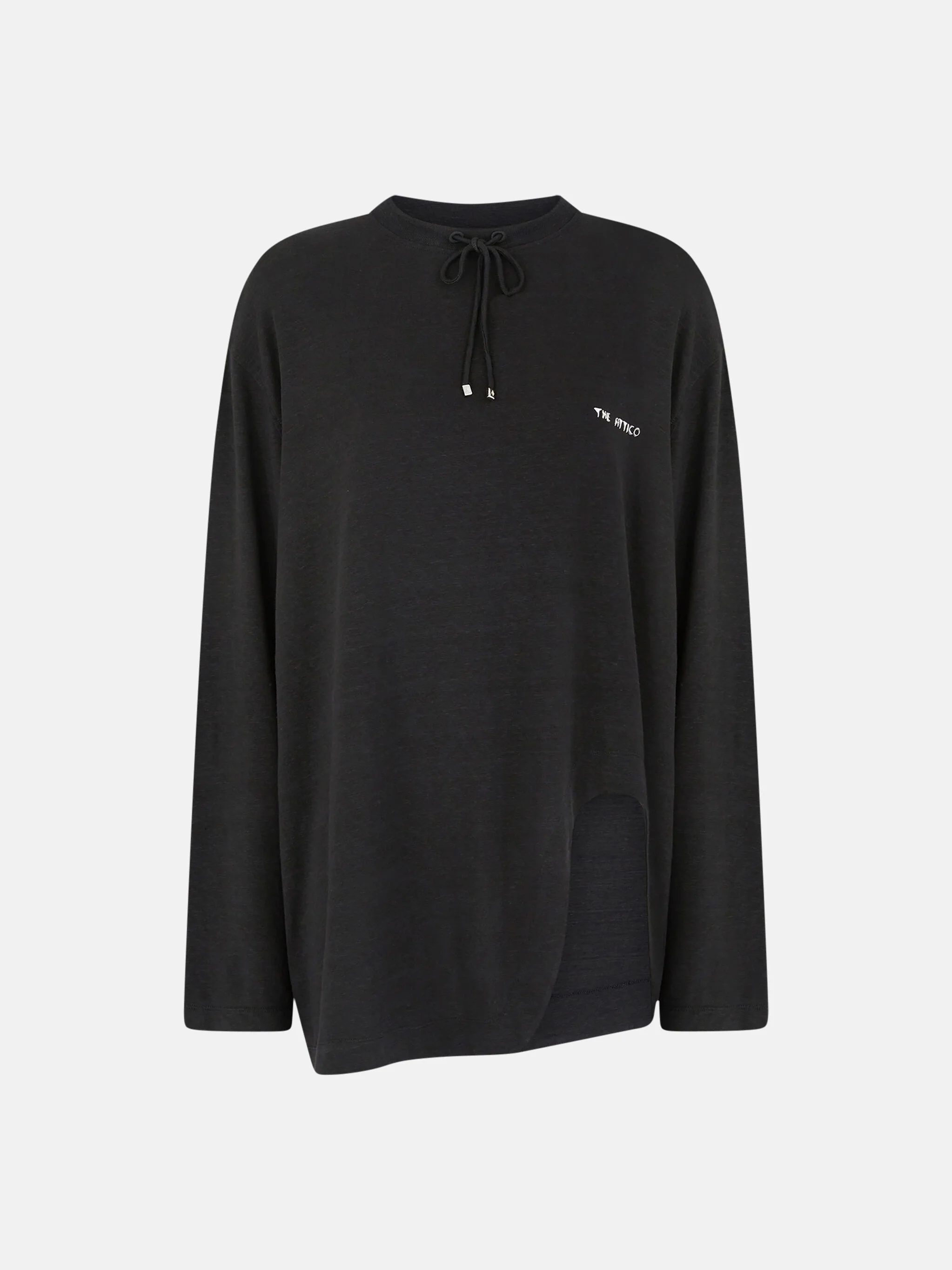T-shirt in black light jersey penteado. Made in Portugal. Style 250WCT00352LLL001AA100 SIZE & FIT The model is wearing a size 40 and her height is 5,10 in, bust 33 in, waist 24 in, hips 91,4 in - height 177 cm, bust 83 cm, waist 60,9 cm, hips 91,4 cm. Regular fit. We recommend taking your true size. DETAILS Main material: 93% linen 7% elastane, second material: 98% linen 2% elastane