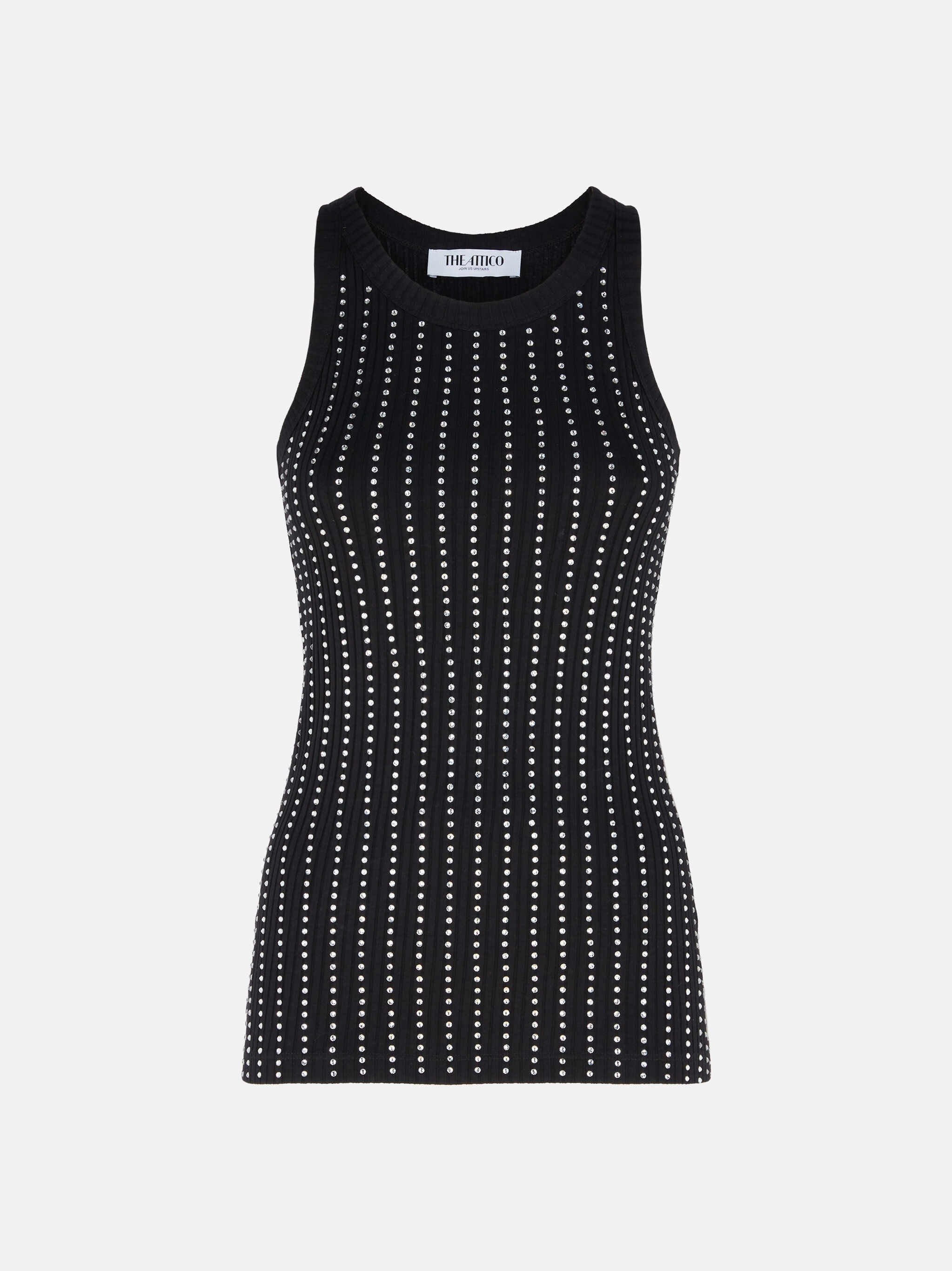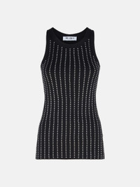 Tank top in black macro jersey rib with thermostrass. Made in Italy. Style 250WCN00004JJJ051TR100 SIZE & FIT The model is wearing a size 40 and her height is 69,6 in, bust 30,7 in, waist 23,2 in, hips 34,6 in - height 177 cm, bust 78 cm, waist 59 cm, hips 88 cm. Regular fit. We recommend taking your true size. DETAILS Main Material: 100% cotton