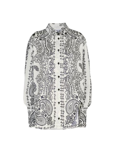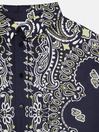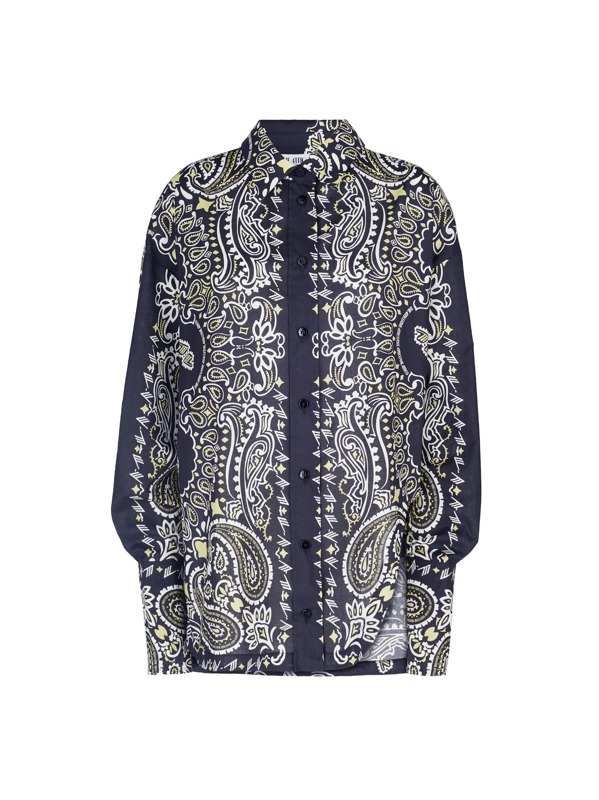 Oversize shirt in black, white and banana bandana printed popeline with shaped split. Style 2310WCH15C077P522 SIZE & FIT The model is wearing a size S and her height is 178 cm, bust 77 cm, waist 58 cm, hips 89 cm. Regular fit. Relaxed, oversized fit. We recommend taking one size smaller. DETAILS Main fabric: 100% cotton