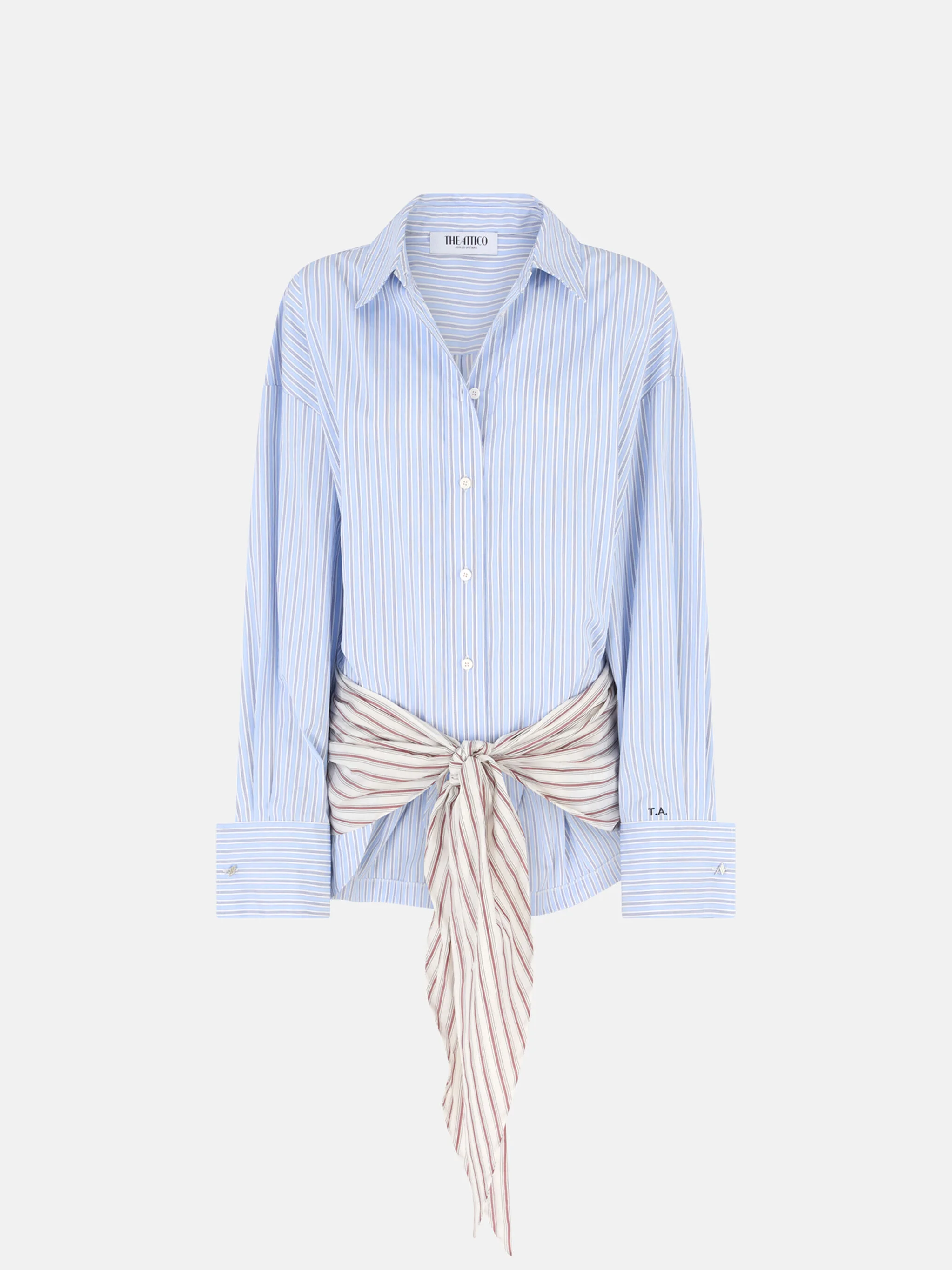 Mini shirt dress in striped popeline mix multicolor. Long sleeves. Knot detail. Made in Italy. Style 260WCA00506MIX100AA021 SIZE & FIT The model is wearing a size 40 and her height is 179 cm, bust 80 cm, waist 60 cm, hips 88 cm - Height 5,10 in, bust 31,4 in, waist 23 in, hips 35 in. Regular fit. We recommend taking your true size. DETAILS Main material: 100% cotton , second material: 100% cupro